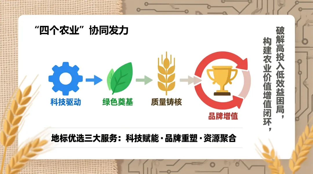 作为深耕三农领域的专业数字化服务平台,【地标优选】依托国资委旗下中国商业研究会数字经济工作委的权威背景,始终把自己定位为农业变革中的“连接器”和“赋能者”。我们核心关注的,正是如何将“四个农业”的国家政策,精准落地到全国2889个地标农产品的“一县一品”实践中,助力县域企业、三农创业者及广大农户,共享农业产业升级的发展红利。