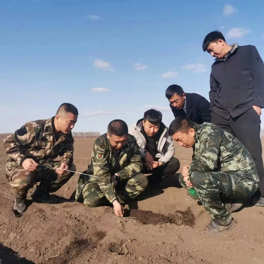 4月14日,长水河农场有限公司举行垦地共建农业生产技术交流会,在第一管理区施肥现场,农场有限公司党委委员、副总经理李洪涛就施肥机分层定位定量改装技术、农艺技术、作业标准、其他农机具改装等技术进行详细讲解,二井镇人民政府副镇长王志扬一行与农场有限公司农技人员就农业生产技术进行交流。