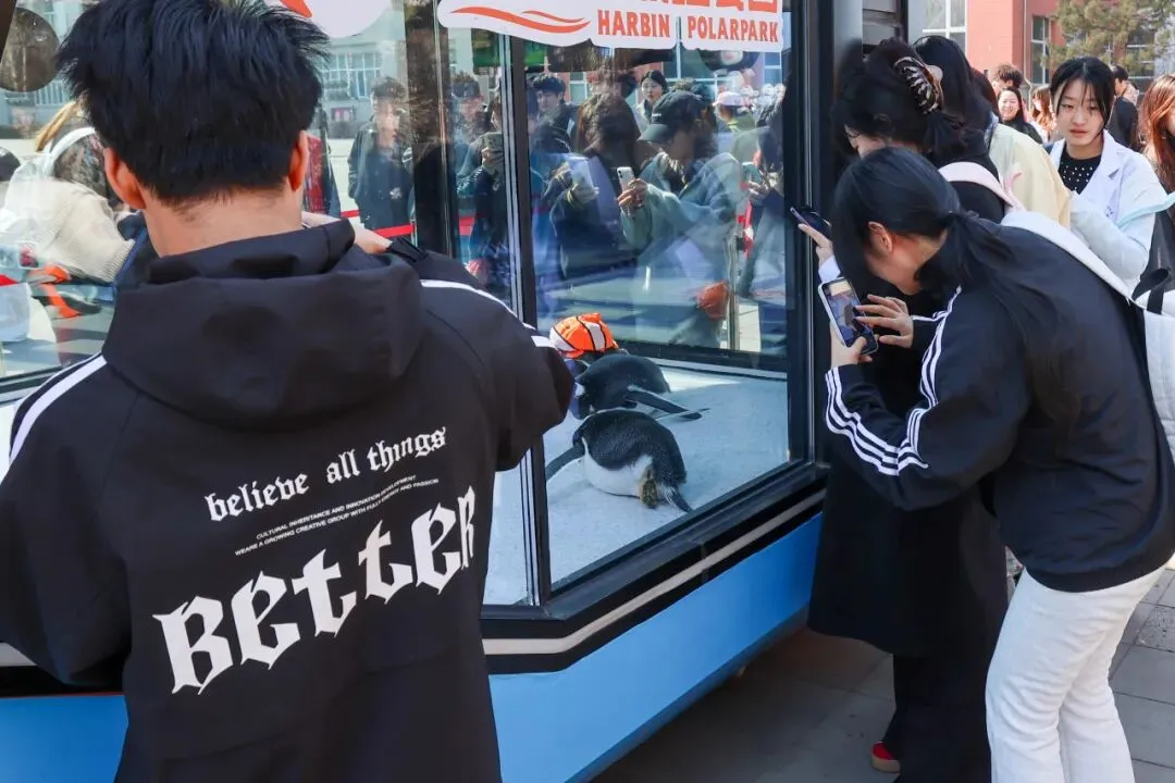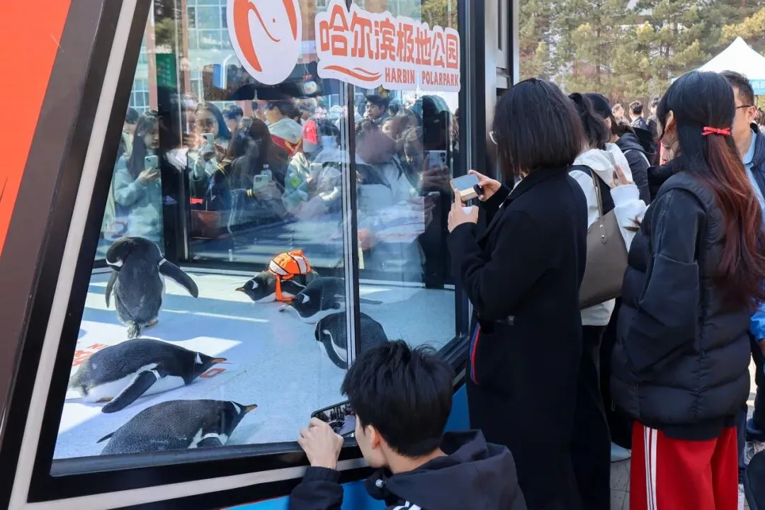 3月31日,来自哈尔滨极地公园的“淘学企鹅”惊喜亮相黑龙江农业工程职业技术大学。这群极地小精灵摇摇摆摆、呆萌可爱,憨态可掬的模样瞬间点燃了全校师生的热情,成为春日校园里最吸睛的风景线。学校领导与全体师生一同观看,这场别样的萌趣邂逅,为忙碌的校园生活增添了满满童趣与温暖。