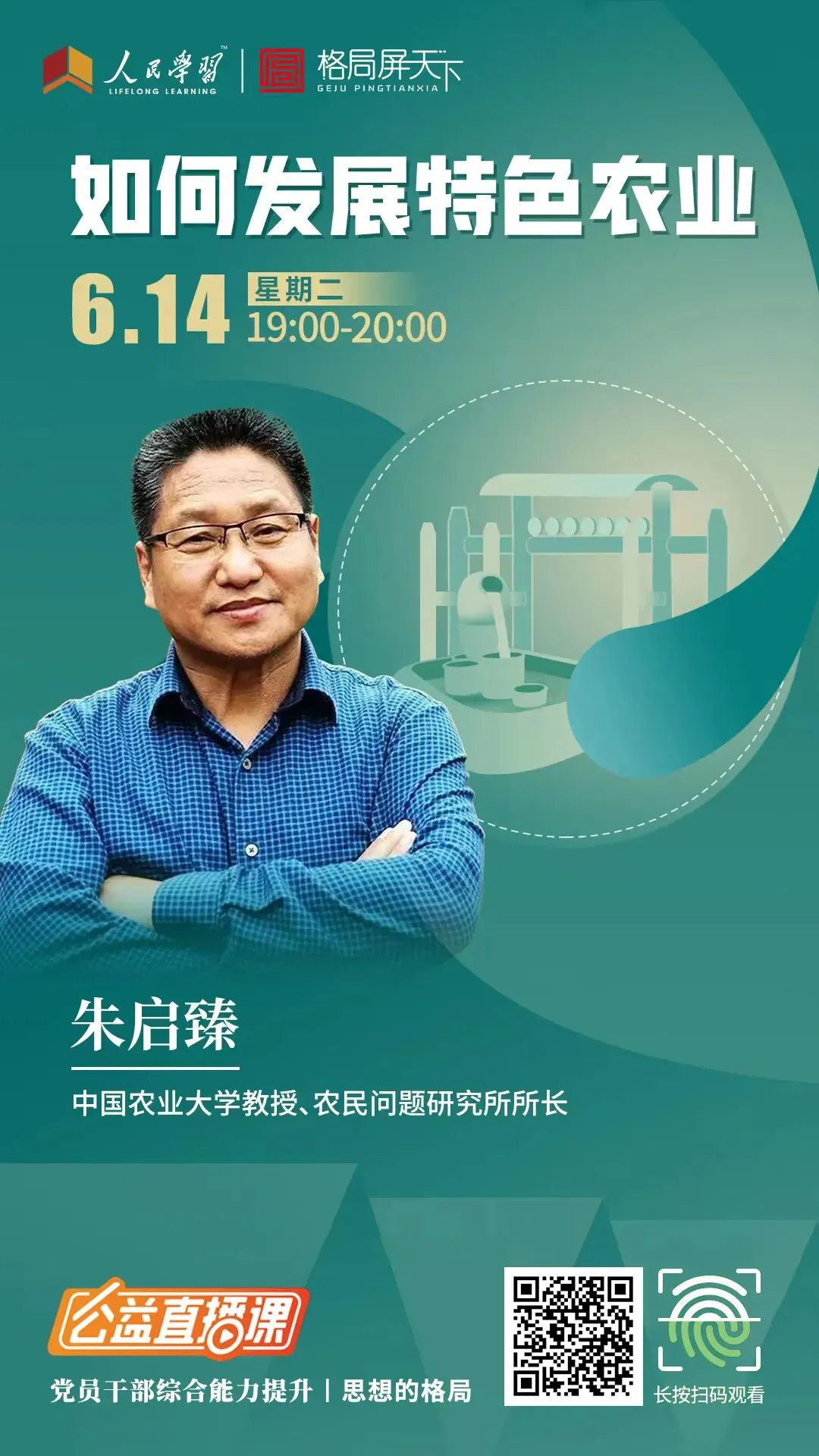 “人民学习·党员干部综合能力提升”和“党建引领乡村振兴创新学习工程”公益直播课程,将由中国农业大学教授、农民问题研究所所长朱启臻讲授《如何发展特色农业》。