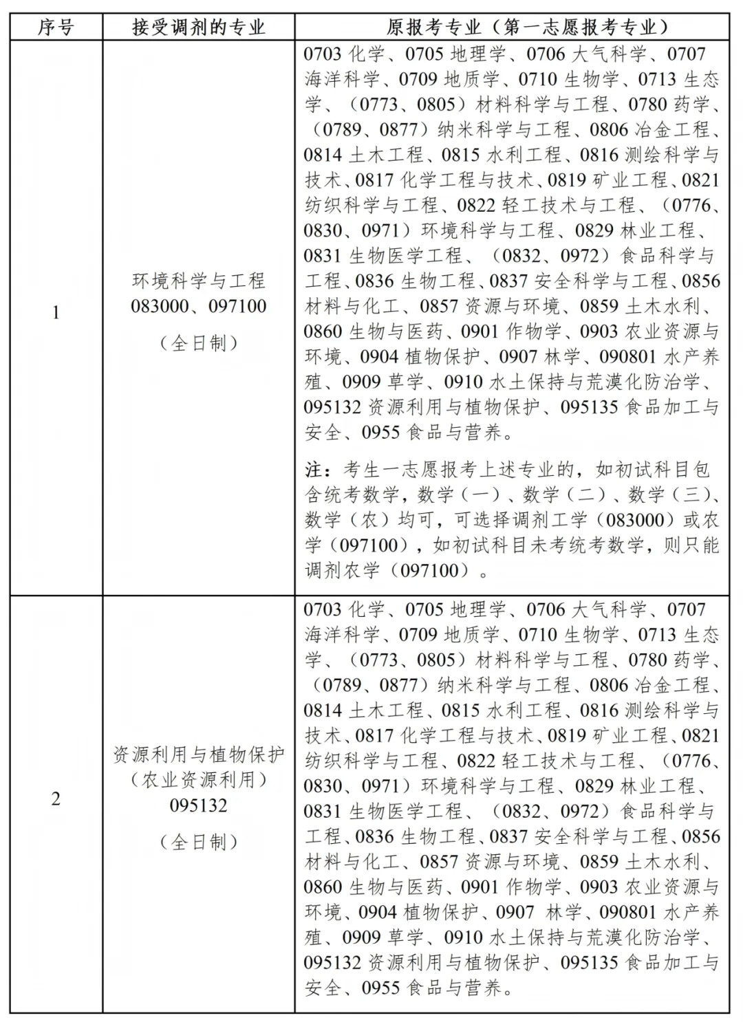 2.接受调剂的专业及原报考专业(第一志愿报考专业)要求如下: