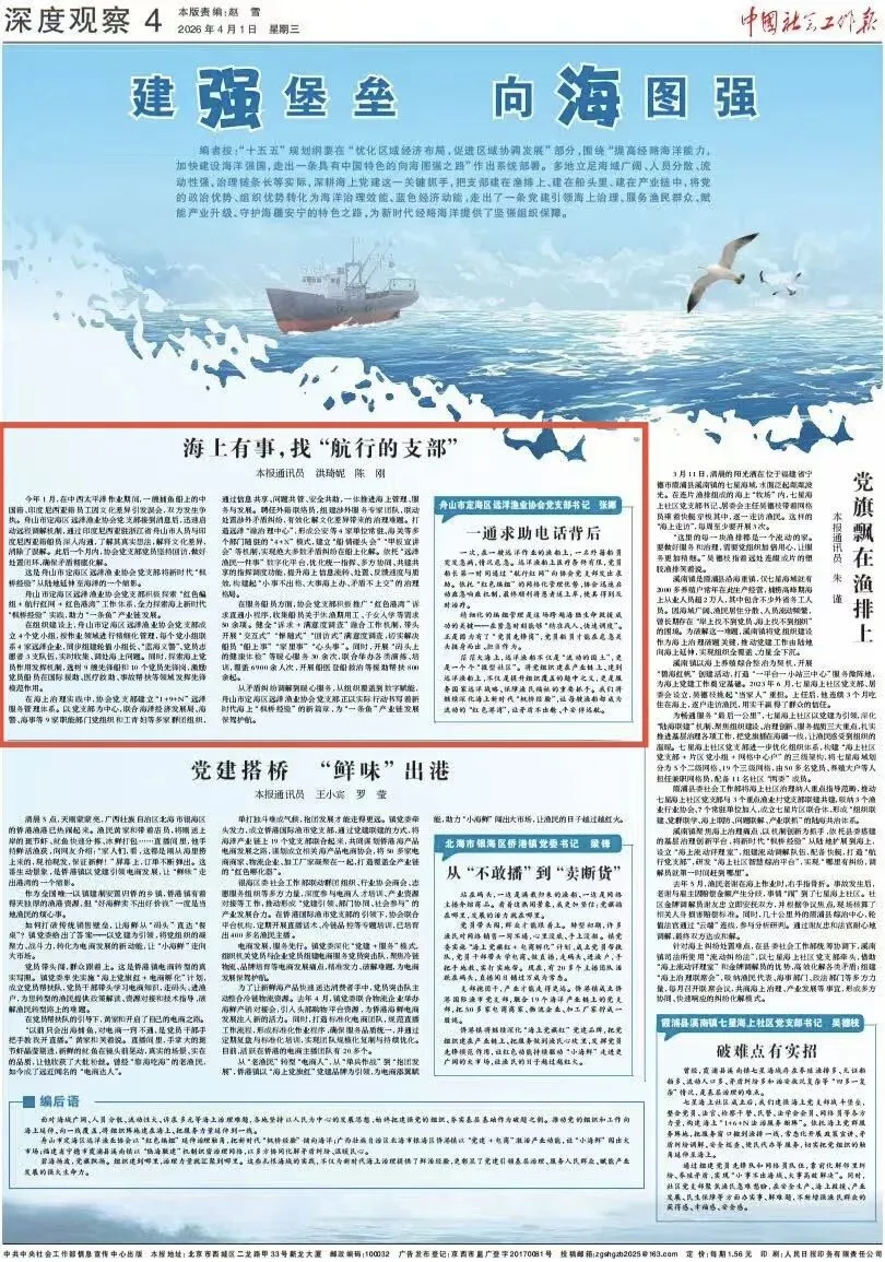 从矛盾纠纷调解到暖心服务,从组织覆盖到数字赋能,舟山市定海区远洋渔业协会党支部正以实际行动书写着新时代海上“枫桥经验”的新篇章,为“一条鱼”产业链发展保驾护航。