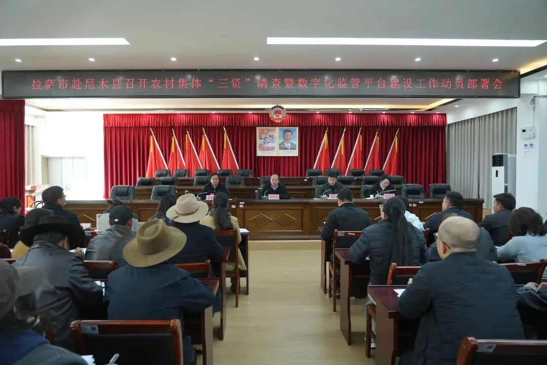 为深入贯彻落实中央、自治区关于加强农村集体“三资”管理的系列决策部署,全面推进国家治理体系与治理能力现代化,4月1日,拉萨市农业农村局党组书记、副局长郭万军一行赴尼木县召开农村集体“三资”清查工作暨数字化监管平台建设工作动员部署会。拉萨市农业农村局副局长刘冬、政改科科长边巴仓觉出席会议,县政府副县长张建雄主持会议,各乡(镇)、县直相关单位主要负责人及村(社区)集体经济组织理事长和财务人员参加会议。
