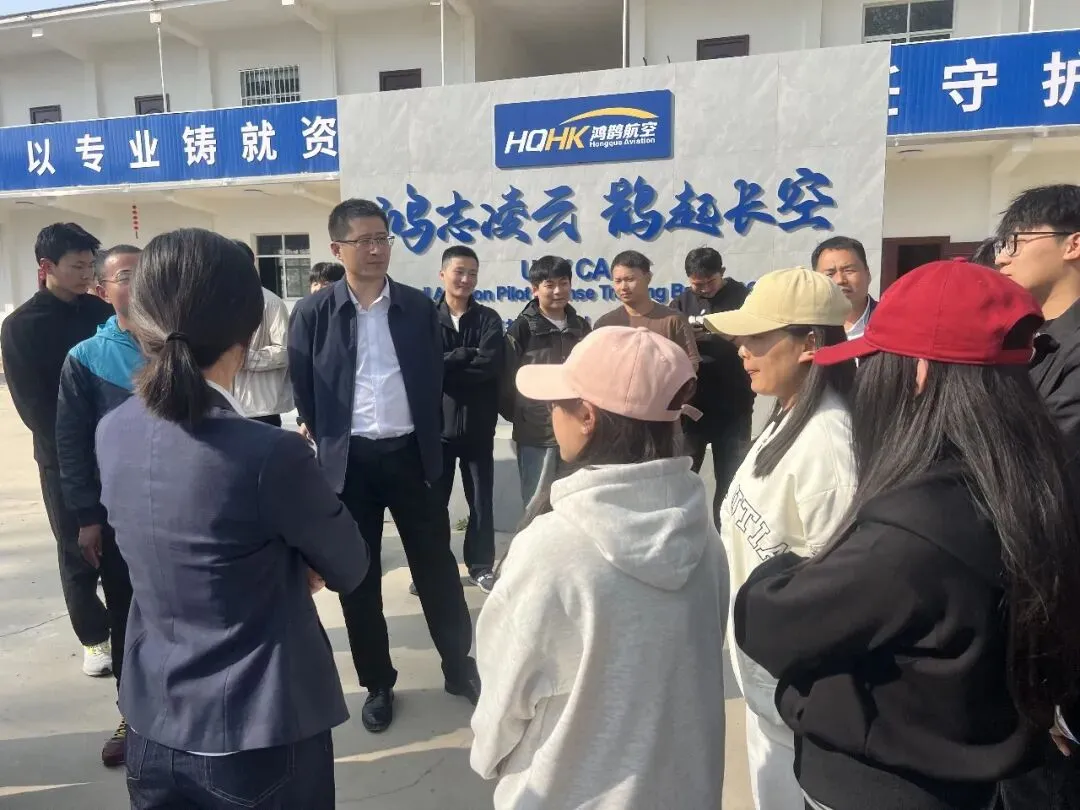 考察期间,在鸿鹊航空领导的陪同下,豫资农服一行先后参观了招生咨询处、理论教室及行业应用设备展示区,详细了解鸿鹊航空的发展布局、技术实力及CAAC无人机培训体系。从标准化的理论教学场地到齐全的实操设备,从专业的师资配置到科学的课程设置,每一处细节都彰显着鸿鹊航空在无人机人才培养领域的专业与用心,得到了考察组的高度认可。