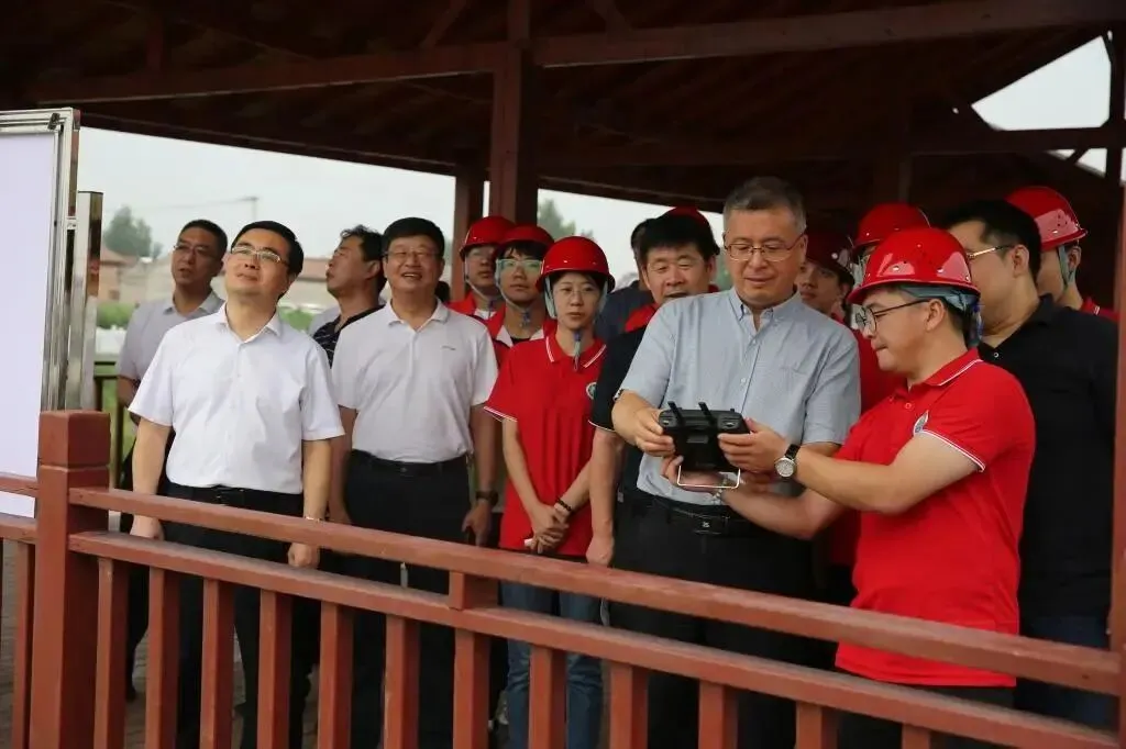 赴龙河综合治理与生态修复工程项目现场看望社会实践团队并听取利用RTK测绘无人机采集航片等情况介绍
