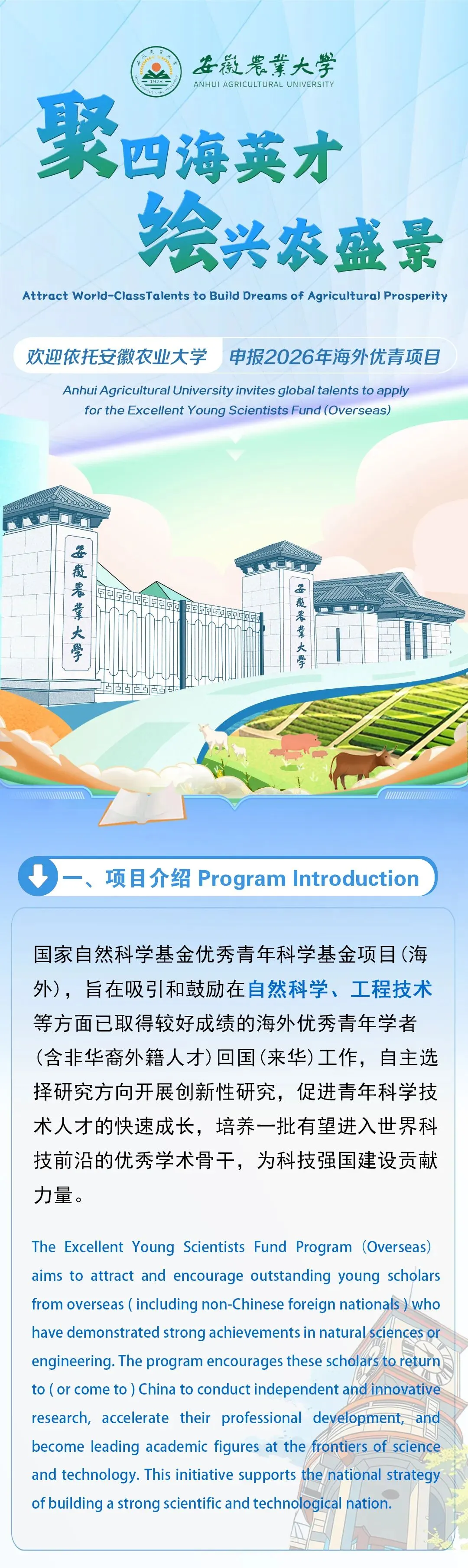 >聚四海英才 绘兴农盛景——欢迎依托安徽农业大学申报2026年海外优青项目