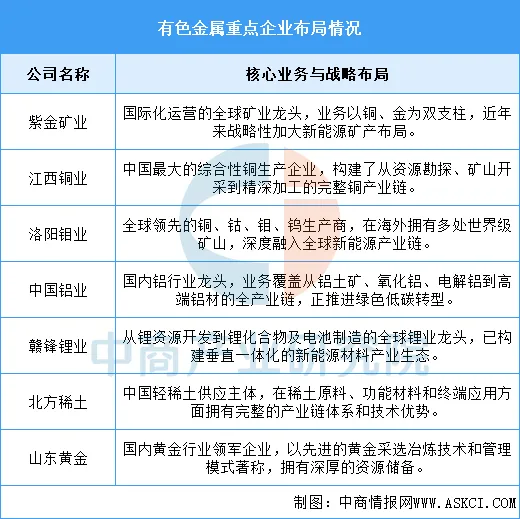 当前,我国有色金属行业已形成由数家超大型龙头企业引领的格局。这些企业凭借对上游资源的强大控制力、一体化的产业链布局以及持续的国际化拓展,构筑了坚实的竞争壁垒。在产业转型升级背景下,头部企业正积极向新能源金属、高端材料等领域延伸,并通过技术创新驱动绿色、智能化发展,不仅主导了国内市场的供给结构,也显著提升了在全球产业链中的话语权和定价影响力,成为保障国家资源安全和支撑战略性新兴产业发展的核心力量。