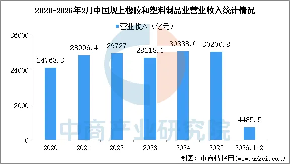 2026年1-2月,全国规模以上橡胶和塑料制品业营业收入和营业成本均同比增长,利润总额出现同比增长。2026年1-2月,全国规模以上橡胶和塑料制品业营业收入4485.5亿元,同比增长2.2%。