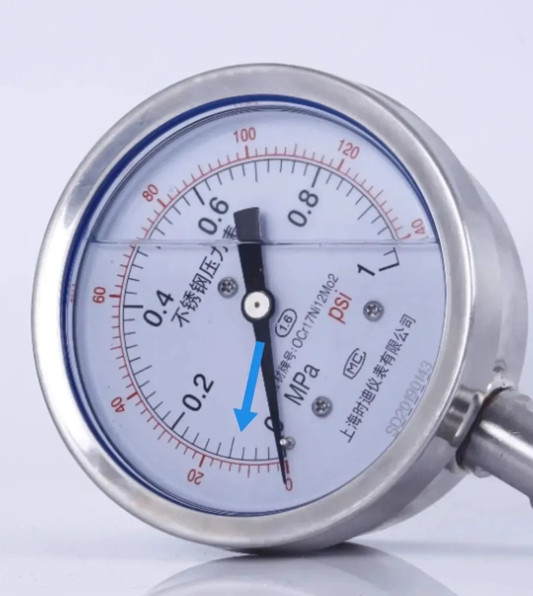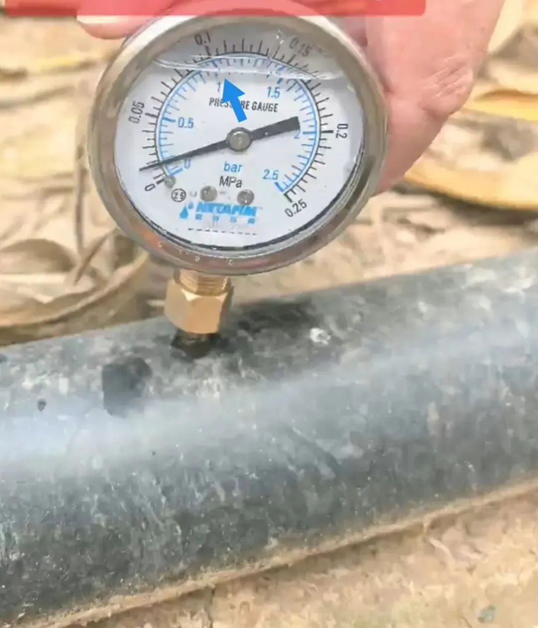 蓝色↑指示的位置大约是1kg/c㎡(1公斤水压)