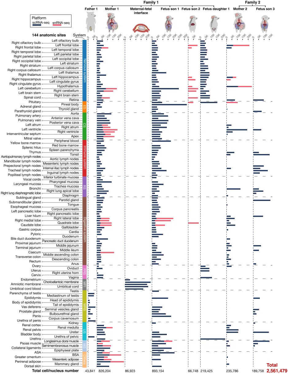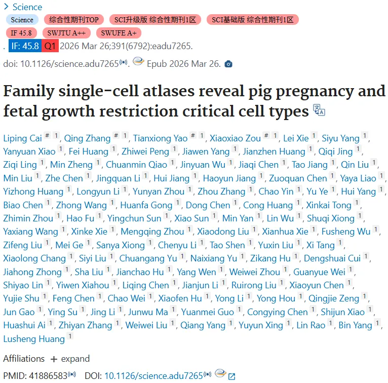 🔑 江西农业大学以猪为模型,构建了同一家族全身单细胞图谱,覆盖母体与胎儿海量组织。