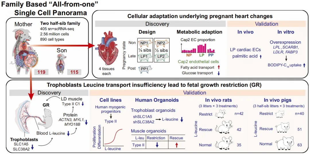 (针对一个猪家族构建的“全整合型”单细胞图谱,揭示了妊娠诱导心脏适应及胎儿生长受限背后的细胞机制。)