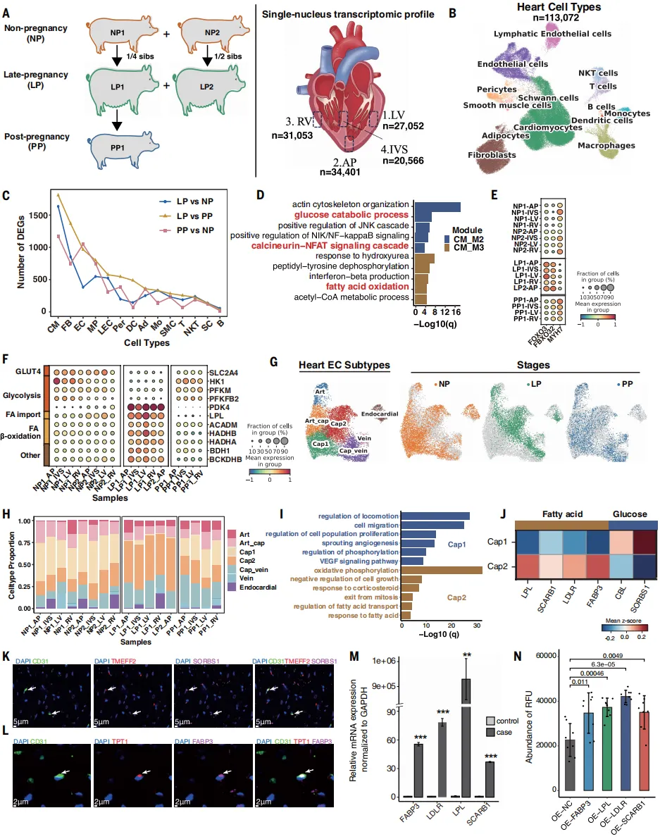 孕期心脏富集 Cap2 内皮细胞,以脂肪酸代谢供能,产后可恢复,揭示生理性心肌肥厚机制。