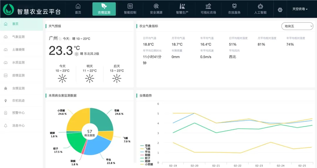 依托南智云农业云平台,公司实现农情监测、视频监控、智能控制等八大功能一体化集成,支持电脑、手机端便捷操作,实现多个农场云端管理、多员工协同作业,让农业生产“一屏掌控、一键智管”。平台搭载上千种病虫害数据库、60余种AI识别模型,可精准完成病虫害识别、果蔬长势监测,自动推送科学方案,大幅提升管控效率与安全性。