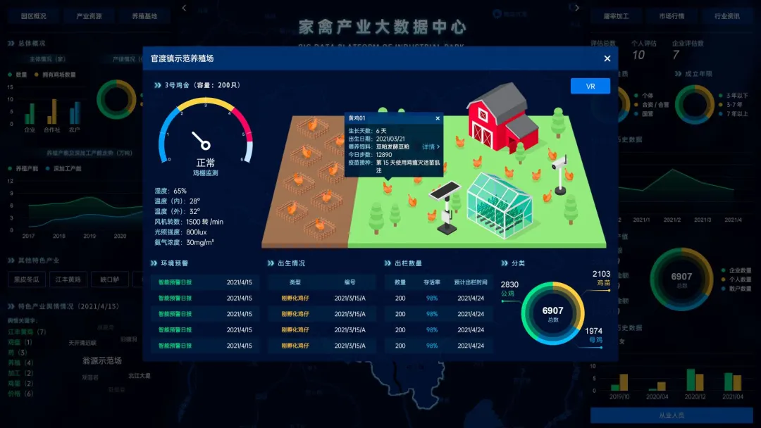 在家禽养殖领域,公司构建全产业链数字化平台,实现育种、养殖、加工等全环节数据可视化,集成智能环控、疫病预警等功能,同时创新“产业大数据+金融科技”模式,打通产业链资源,助力从业者降本增效。
