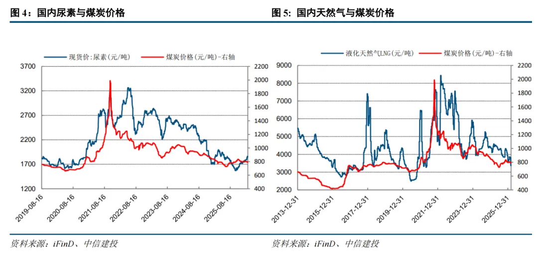 全球定价锚定效应:国内尿素生产以煤制工艺为主导(产能占比约70%),煤价直接决定合成氨生产成本曲线。国际天然气价格暴涨对国内尿素生产的直接成本冲击有限,但若引发全球能源系统性紧张,煤炭作为基础能源的价格中枢抬升将间接传导至化肥成本。