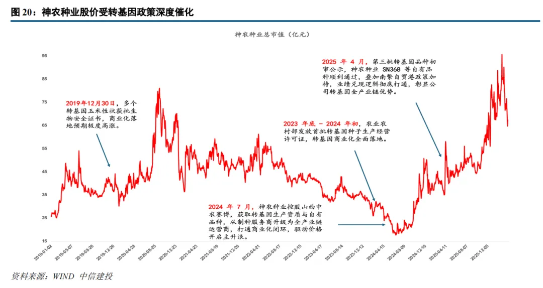 具体到个股层面,转基因政策对以神农种业为代表的种业企业股价构成持续催化。政策预期的兑现节奏、企业转基因品种的获批进度以及商业化落地能力,是决定股价波动幅度与持续性的核心变量。