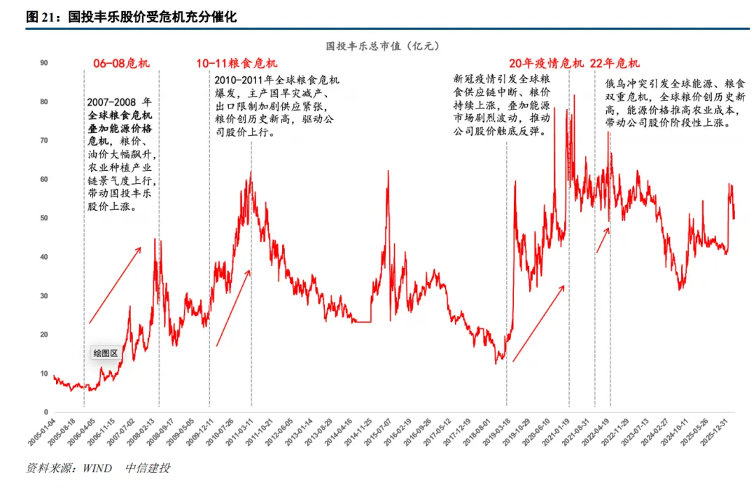 2)政策间接赋能: 危机爆发后,粮食安全战略地位进一步强化,政策快速跟进,通过补贴、收储、种业扶持等举措为农业企业降本增效、扩大经营提供支撑,打开长期成长空间。