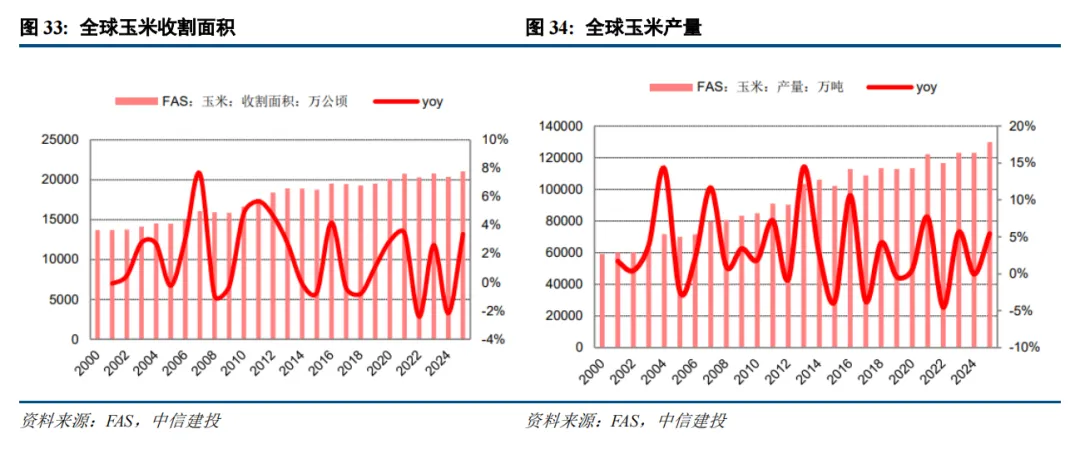 供给端: 2026 年供给弹性受成本与种植意愿双重约束。玉米作为一年生农作物,短期供给具备年度调整空间,但2026 年全球玉米供给面临放量压力,整体供给弹性收缩。