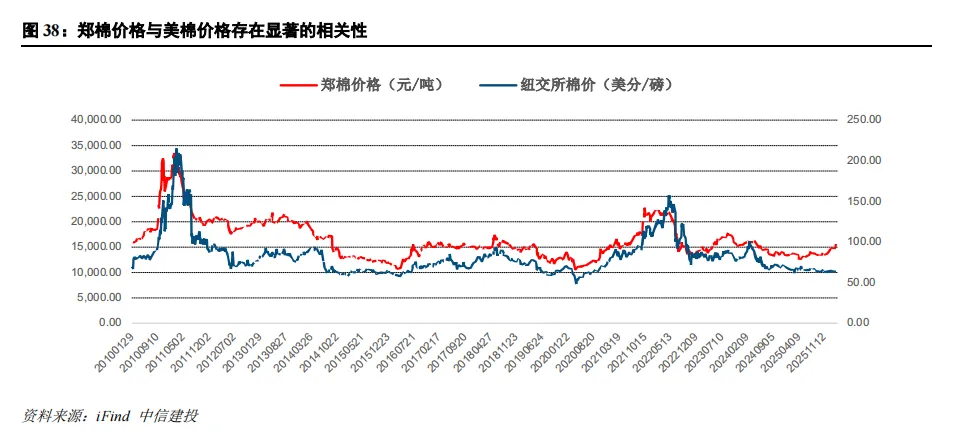 中国棉花消费中仍有相当部分为进口提供,外棉提价后国产棉竞争力提升。作为全球最大棉花消费国,我国年度棉花消费量长期维持在较高水平,而国内产量存在稳定缺口,需通过进口补充原料供给。因此国际棉价波动直接传导至进口到岸成本,当美棉等外盘价格上行,进口棉采购成本同步抬升,国内纺织企业原料采购压力加大,内外价差有望缩窄,国产棉竞争力提升。