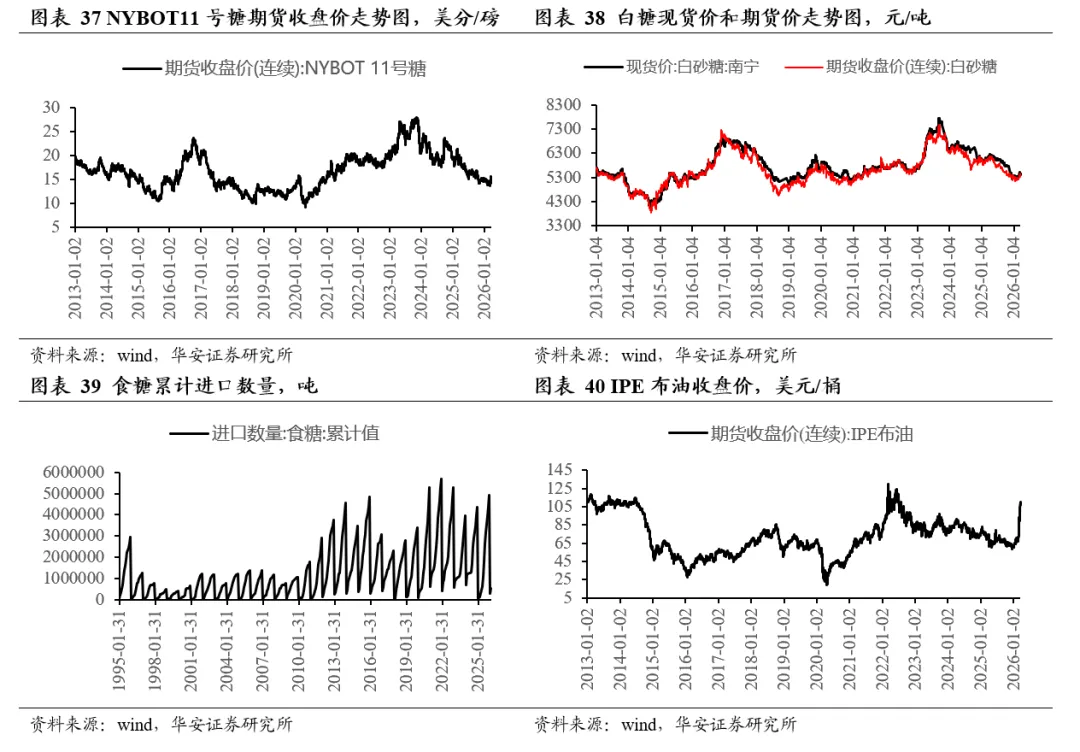 本周五,NYBOT 11号糖期货收盘价13.76美分/磅,周环比跌8.02%,同比跌23.51%;IPE布油收盘价94.26美元/桶,周环比跌13.71%,同比涨48.68%。