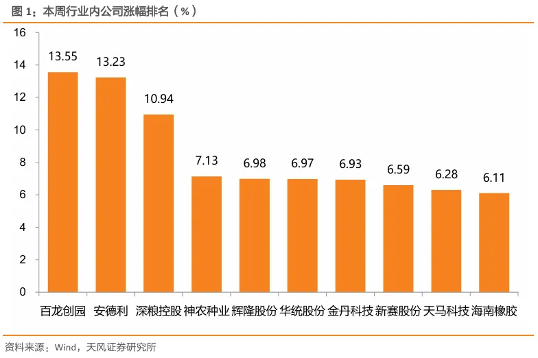 2)本周上游农产品价格继续走弱。截至4月10日,豆粕全国均价3082元/吨,环比-113.71元/吨;玉米全国均价2370元/吨,环比-10元/吨;小麦全国均价2570元/吨,环比持平(数据来源:WIND)。在国际贸易不确定性背景下,全球农产品供应链重构加速,国家粮食安全等资源安全重要性提升,有望推动国内粮食结构优化;在育种领域,国内转基因管理体系已臻完善,转基因商业化种植有望加速。相关标的:①种子:【隆平高科】、【大北农】、【荃银高科】、【登海种业】;②农资:【新洋丰】(与化工组联合覆盖);③种植及下游:【中粮糖业】、【苏垦农发】、【华资实业】、【金健米业】、【北大荒】;④节水:【大禹节水】。