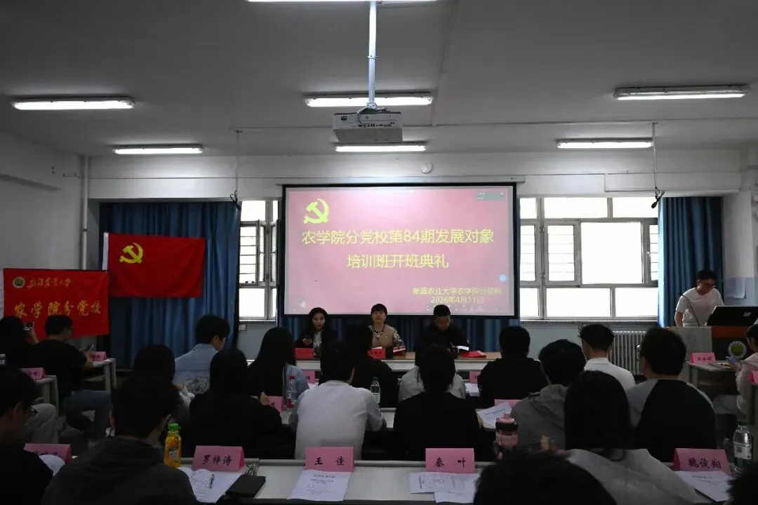 为深入学习贯彻习近平新时代中国特色社会主义思想,引导发展对象坚定理想信念、提升政治素养,4月11日上午,农学院分党校在多思楼301教室举行新疆农业大学第84期党校发展对象培训(一)班开班典礼。农学院党委书记、分党校校长顾爱星,农学院党委副书记、纪委书记田永虎及本期培训班148名学员参加本次开班典礼。活动由农学院学工办副主任、分党校班主任古丽那扎尔·外力主持。
