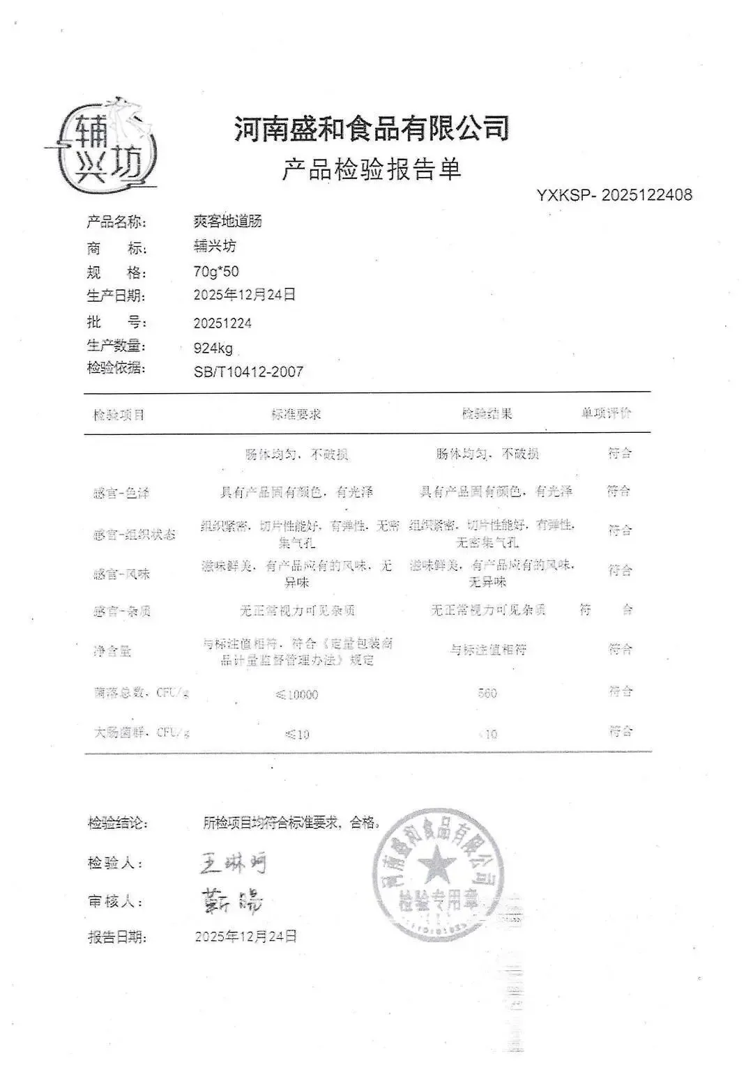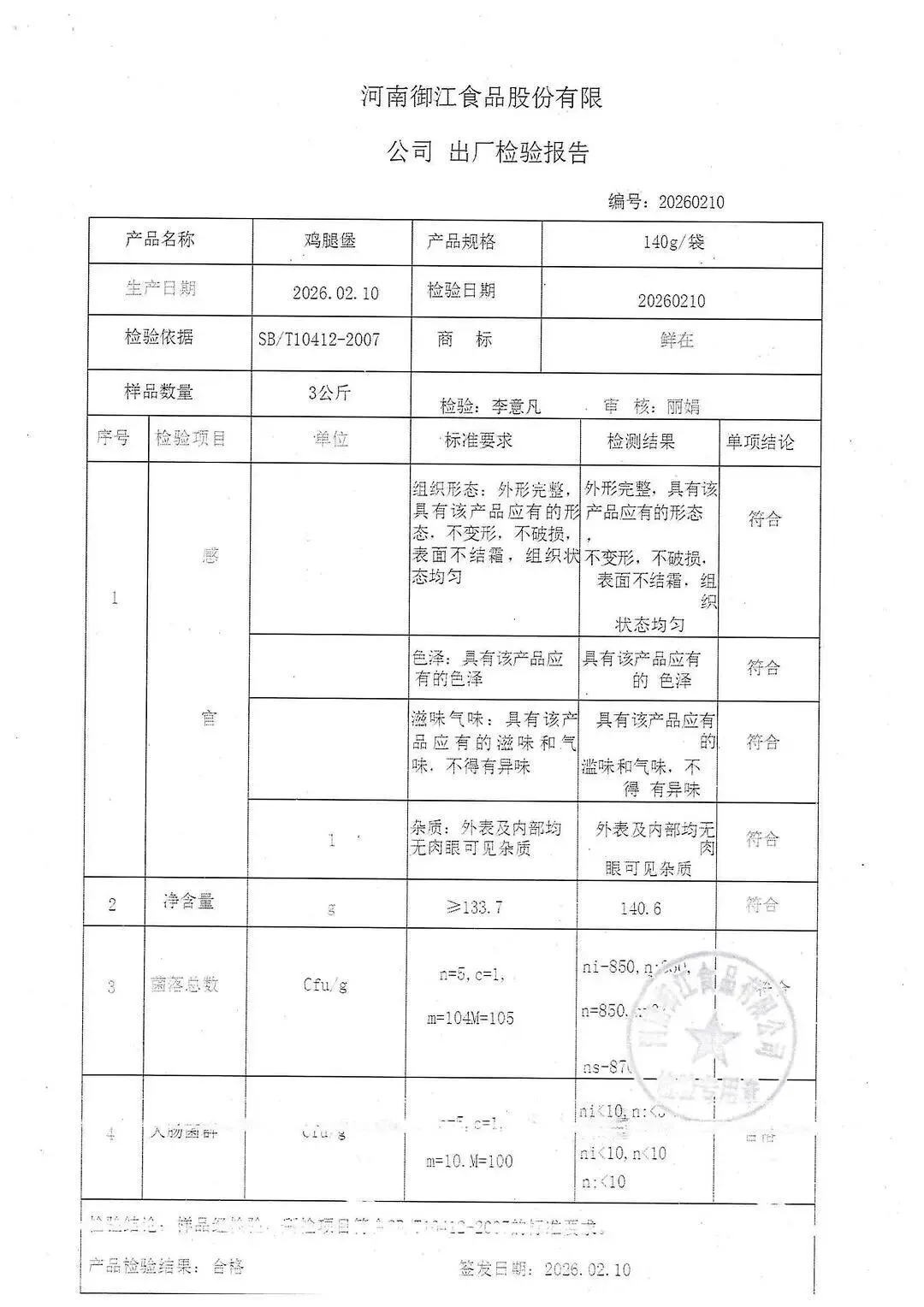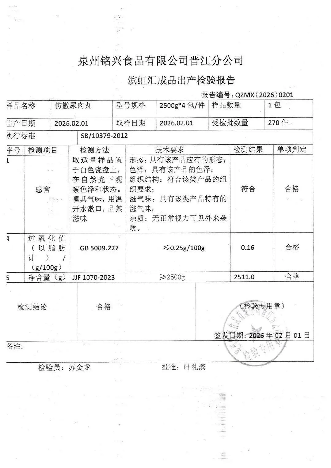 冻品、水饺、丸子、热狗、腊肠检测报告