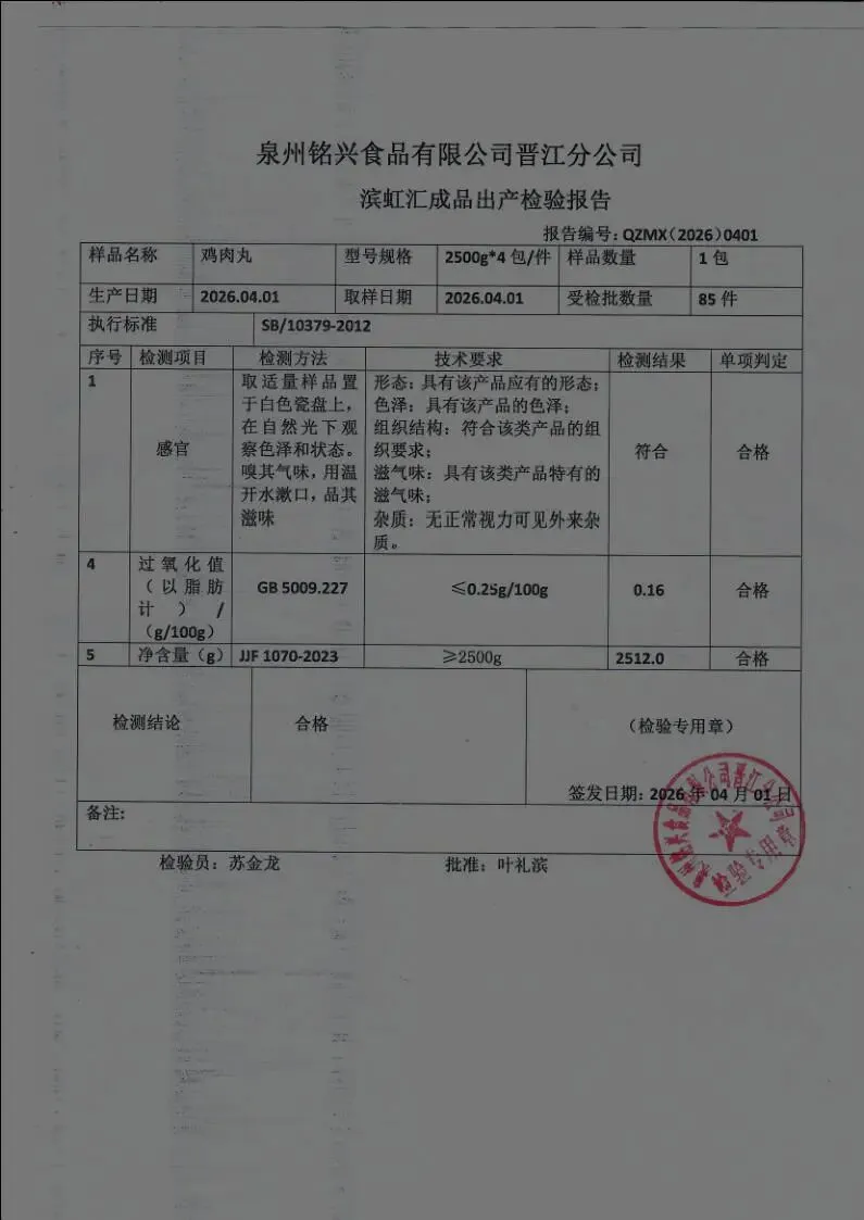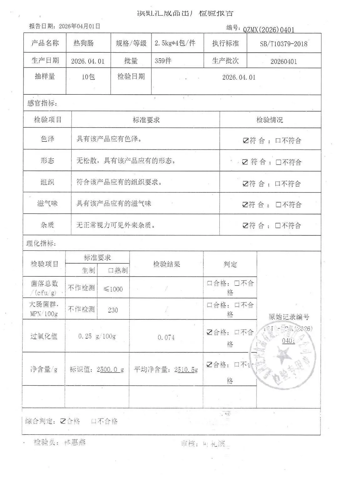 >金浦供应链&禾美农业-04月13日冻品、水饺、丸子、热狗、腊肠检测报告