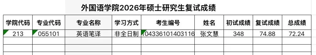 经初试,复试考核,并报外国语学院硕士研究生领导小组审议,张文慧符合拟录取资格。具体名单见附件。