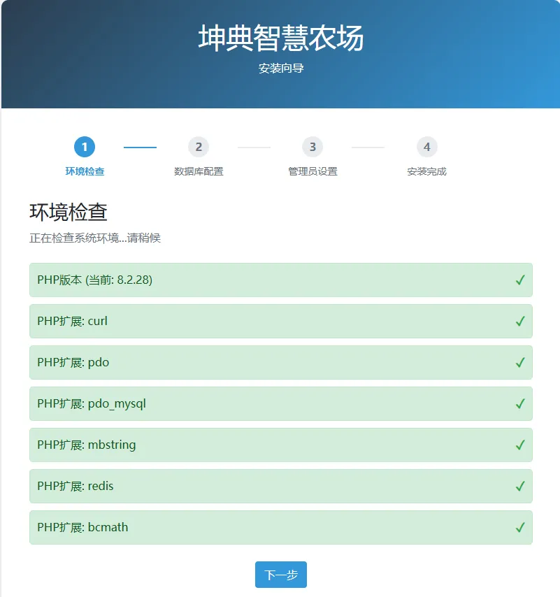 申请ssl证书,访问安装页面域名+/admin/install 完成之前所有步骤后会显示出以下页面