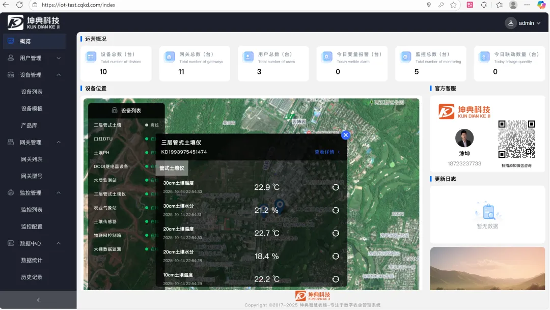 开源农业物联网系统,简单易用的农业物联网系统,广泛用于:农业物联网、智慧农业、智慧种植、智慧养殖、高标准农田、农产品溯源、数据大屏等场景,方便各中小企业使用,支持DTU、继电器、RS485传感器、视频监控GBT28181接入,低成本打造企业自己的农业物联网平台,支基于webman框架突破了传统PHP的性能瓶颈,高稳定性,超高性能,高复用,高扩展性,超级简单易用。