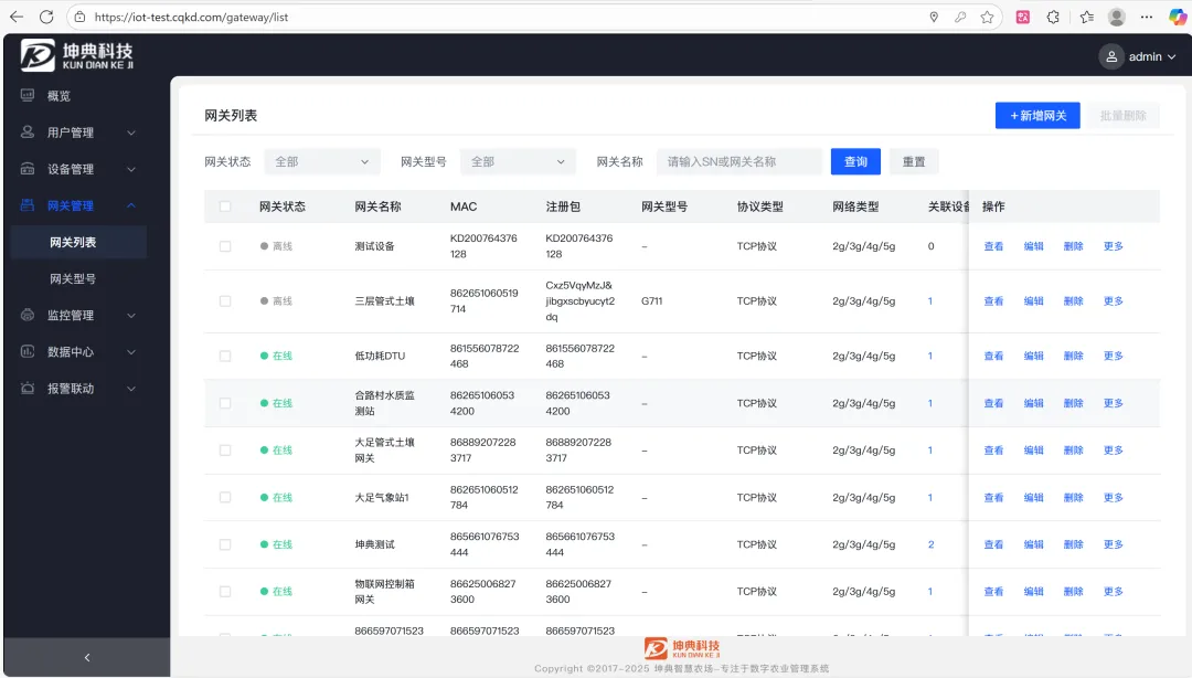 - 网关管理:支持服务端秒级给设备下发指令,支持以队列的方式下发