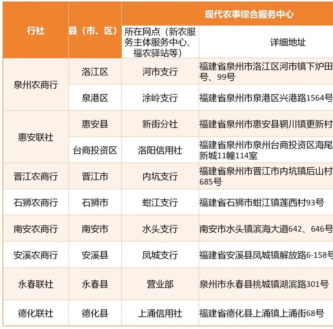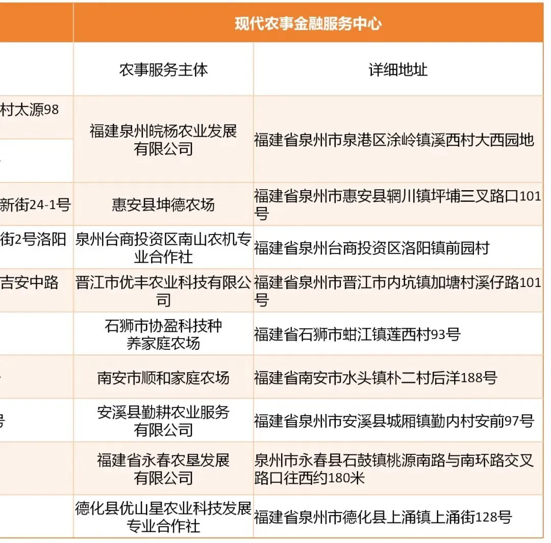 结合泉州市区域性农事综合服务中心“1+4+N”培育体系,泉州农信系统发挥全市乡镇网点全覆盖优势,联动各县(市、区)农业农村部门高标准打造10个区域现代农事综合服务中心、9个区域现代农事金融服务中心,构建起覆盖全市的“就近办、上门办、一站式”的农事综合服务线下网络。