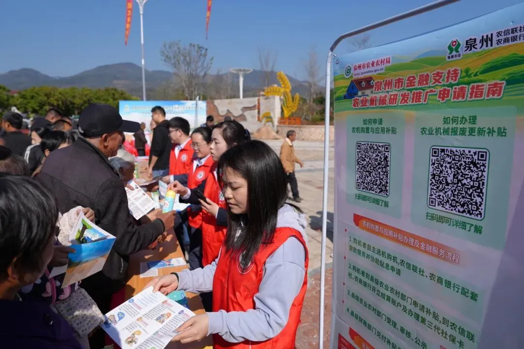 坚持线上线下协同发力,泉州农信系统联合泉州市农业农村局深入永春、安溪等地,现场解读农机购置补贴、报废更新、作业用油优惠等惠农政策,通过政策宣讲、产品推介、现场办贷、技术指导等一站式农事综合服务,进一步丰富区域性现代农事社会化综合服务中心服务内涵。