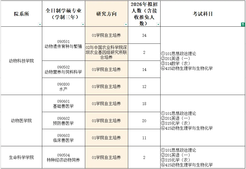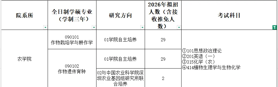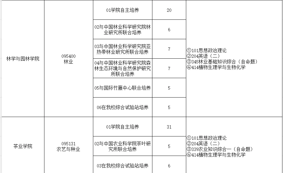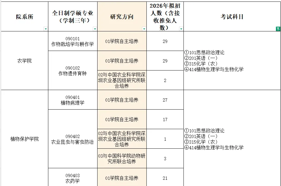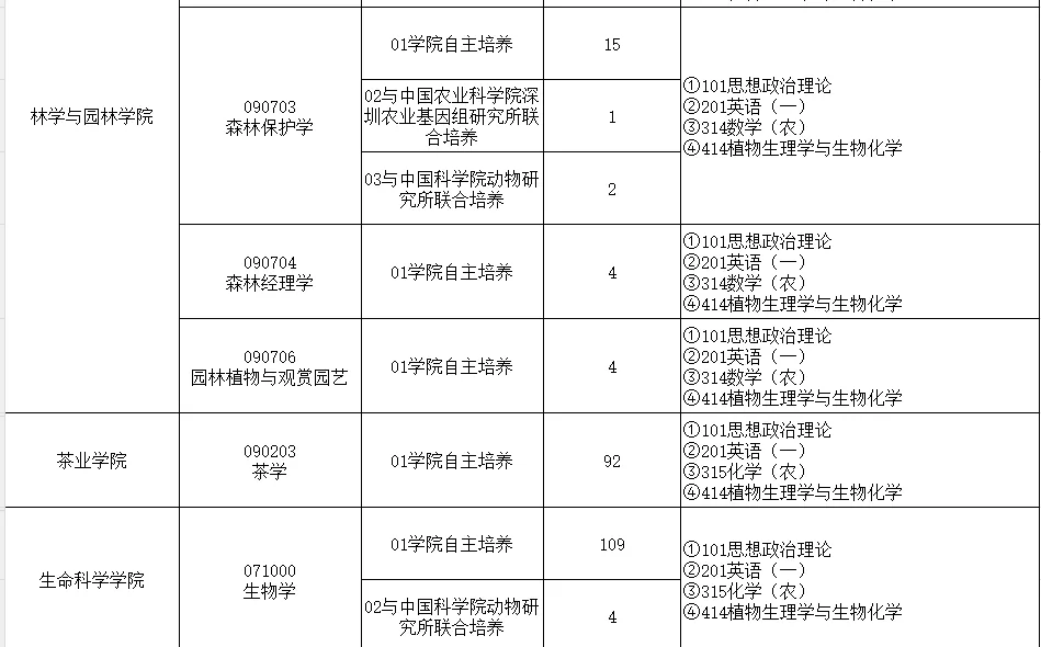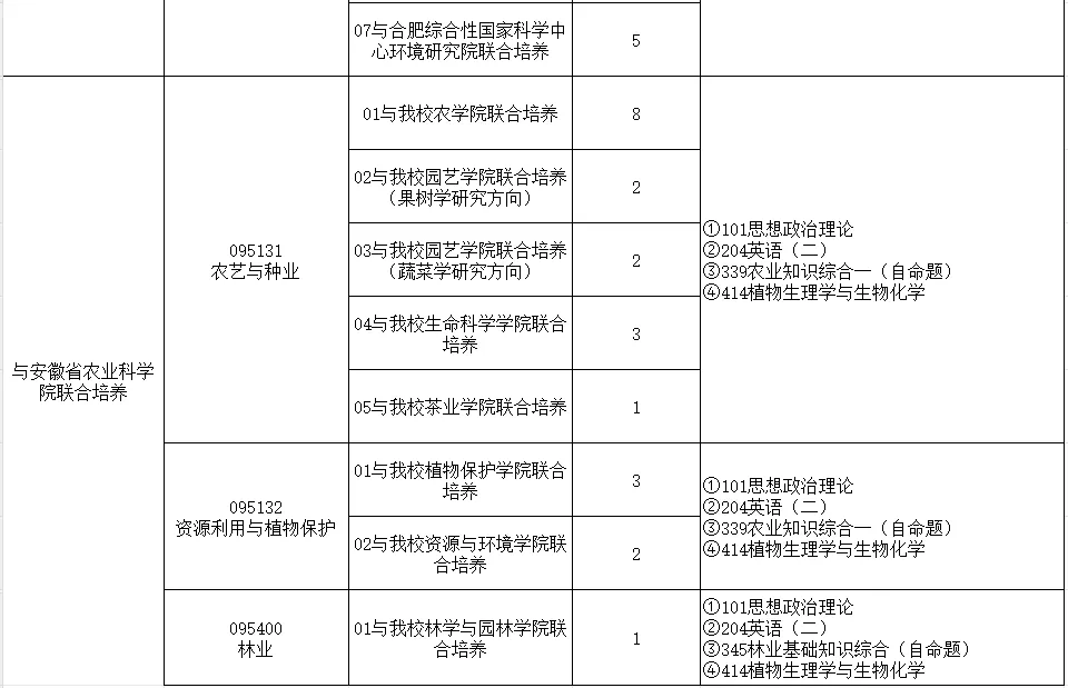 备注:安徽农业大学农学专业最新招生目录、参考书目及复试细则,请关注安徽农业大学研究生院官网(https://yjs.ahau.edu.cn/)