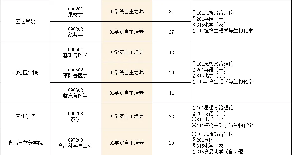 安徽农业大学农学门类执行