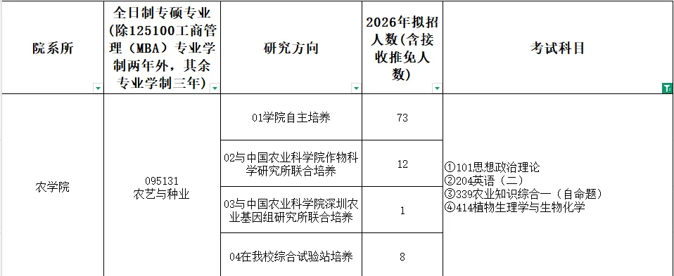 安徽农业大学农学类全日制硕士研究生