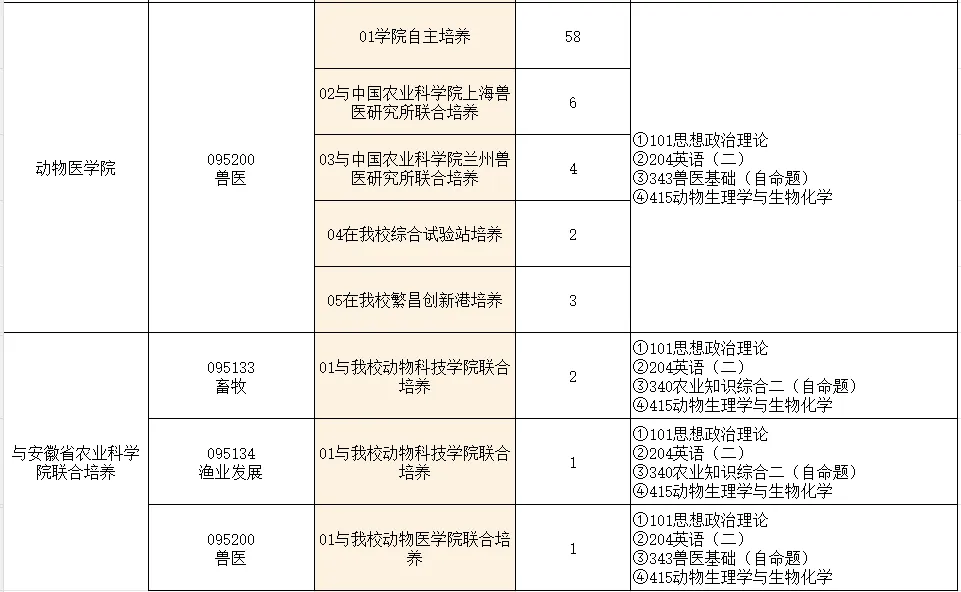 ,契合学校在动物遗传育种、动物营养调控、临床兽医、疫病防控等领域的研究特色,考点贴近华东地区规模化养殖实践与兽医临床应用。