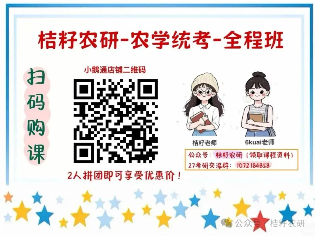扫描下方店铺二维码即可报名。如有任何疑问,可在公众号 “桔籽农研” 内领取课程资料,或加入 27 考研交流群:1072184858 咨询,我们会及时为你解答!