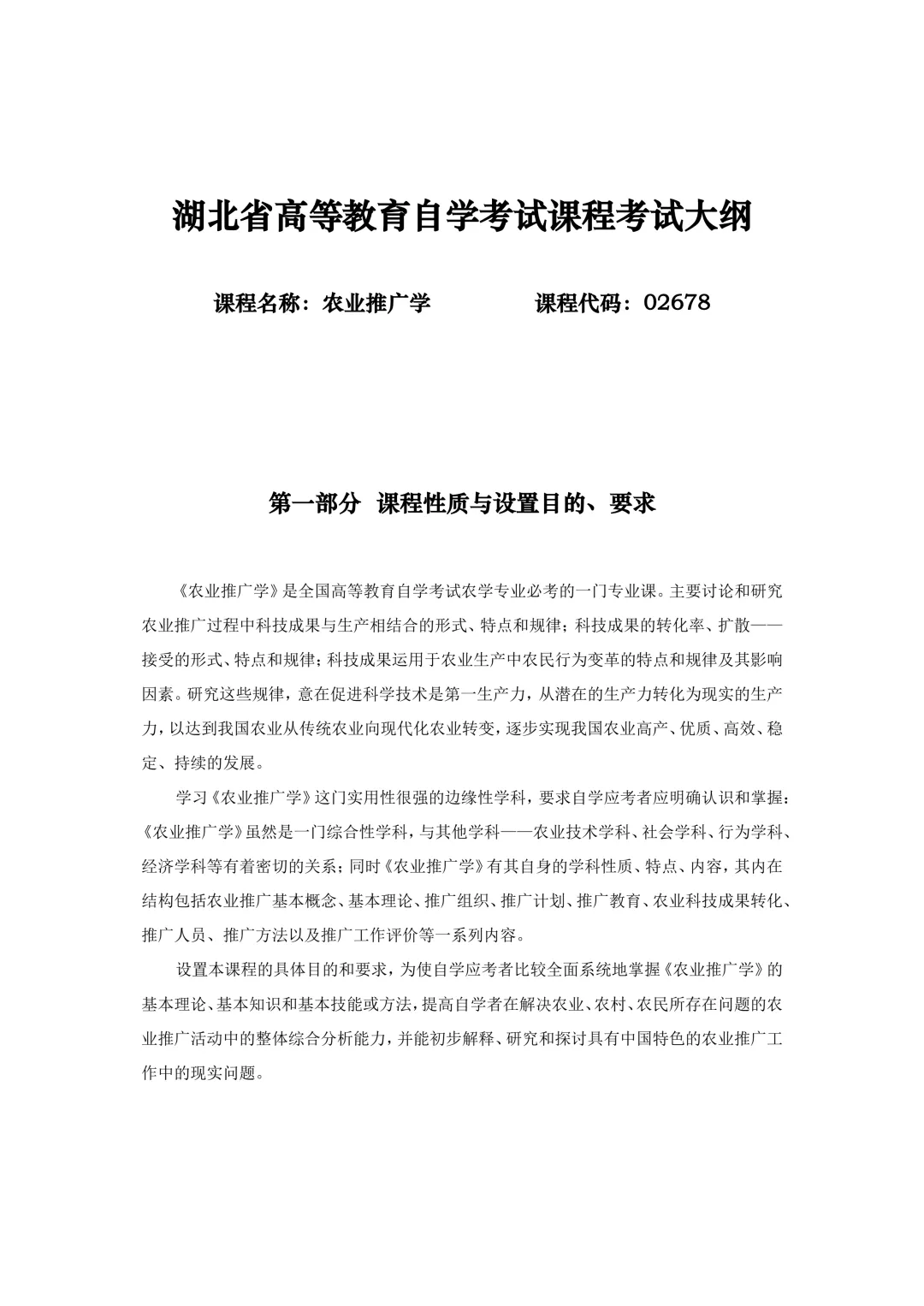 湖北自考251计划大纲-课程名称农业推广学-课程代码02678
