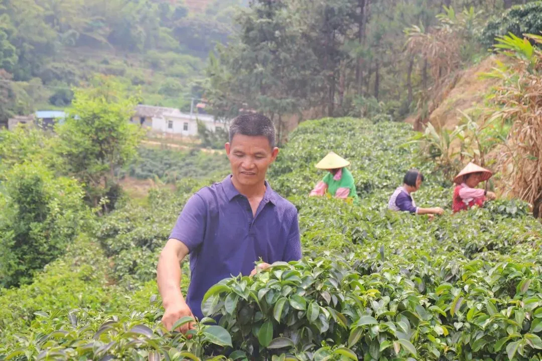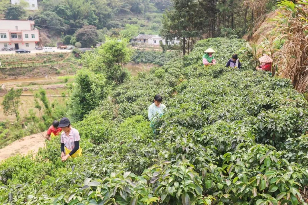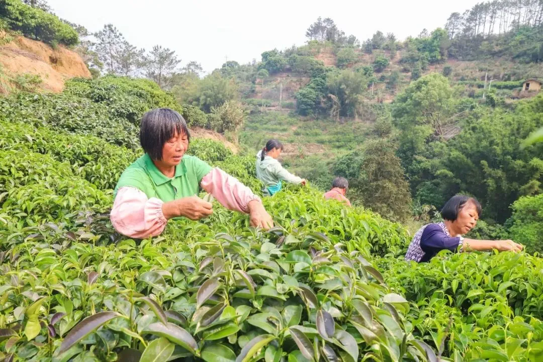 4月8日,春日暖阳洒落洪冠镇翻稿村里爪大榔坑自然村的山间,层层石崖茶树依山而植,鲜嫩的茶芽在枝头舒展,满目翠绿,生机盎然。胡可彬肤色黝黑,身形健壮,眉宇间透着农家汉子的朴实与坚毅。他与六七名村民穿梭于茶丛之间,指尖灵巧地采摘嫩芽,欢声笑语在山谷回荡,忙碌的身影与秀美山色交相辉映,勾勒出一幅动人的春日采茶图。