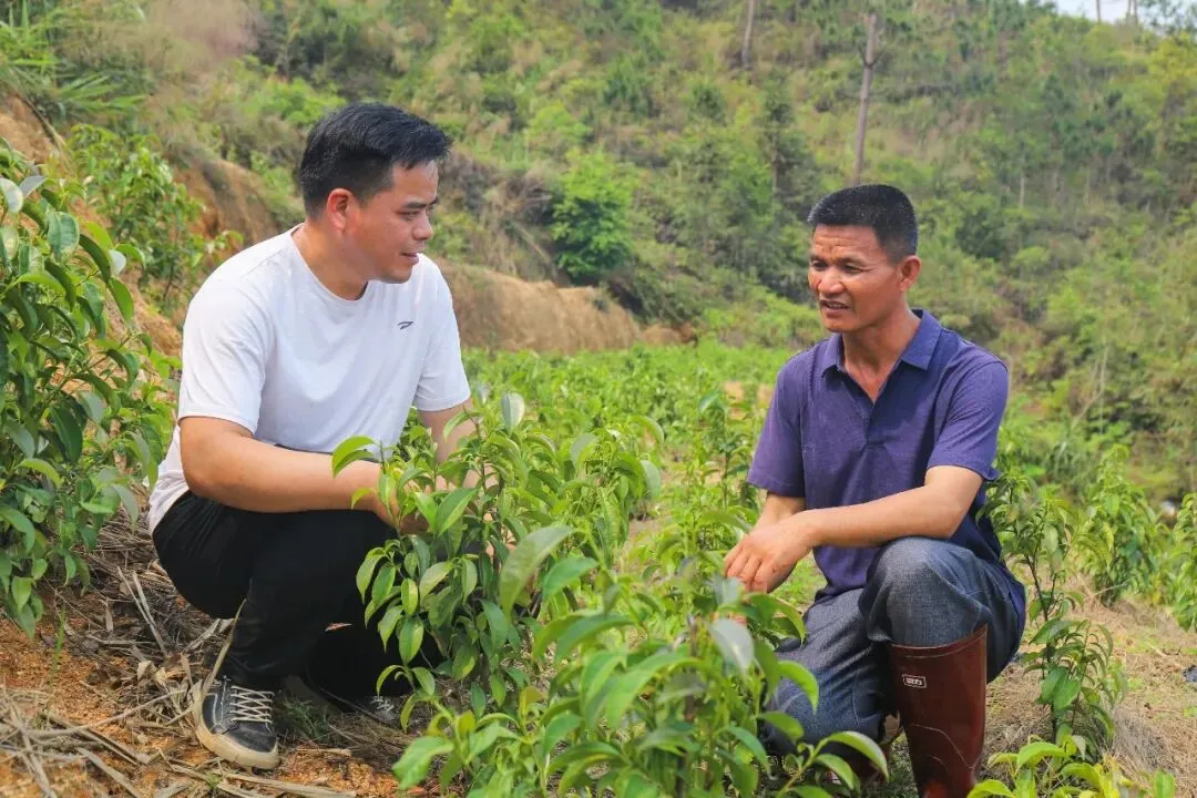 回乡之初,胡可彬从养兔起步,在不断摸索中寻找适合家乡发展的路径。翻稿村生态优良,植被丰茂,自古便有种植茶叶的传统。自幼耳濡目染采茶、炒茶的他,对家乡茶叶怀有深厚感情。依托得天独厚的生态环境,他将目光投向石崖茶种植,以此为核心产业,同时因地制宜发展雪梨、嘉宝果、信宜李等特色水果种植,在青山绿水间播下绿色希望,追逐自己的田园梦想。