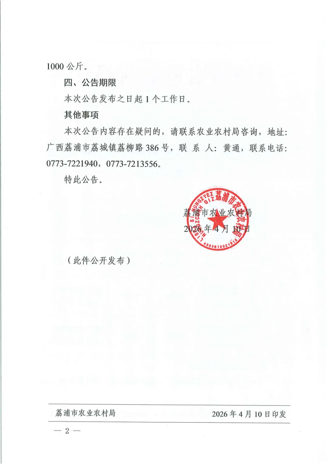 荔浦市农业农村局关于采购2026年动物疫病防控消毒药品的成交公告