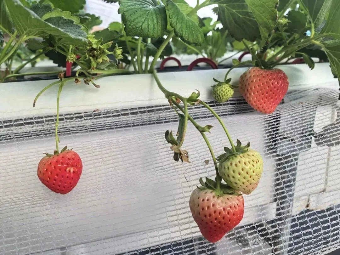 菜农李红峰说:“过去老旧方式的农业,绝大部分靠体力硬扛。我现在搞的这个高架草莓,已经实现了自动化浇水、远程温湿度控制,省了很多人工,人也轻松不少。”