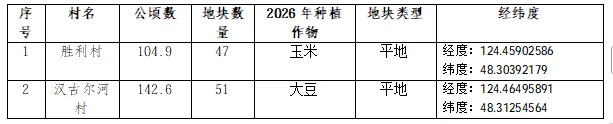 位于莫力达瓦达斡尔族自治旗汉古尔河镇胜利村和汉古尔河村,有247.5公顷旱田(以第二轮土地确权面积为准)现开始招募合作种植,原竞价会将于2026年4月13日上午10 :30进行,因不可抗因素,将调整为4月13日上午11:00进行,其他信息不变。