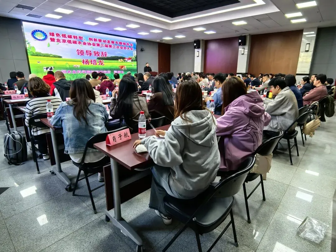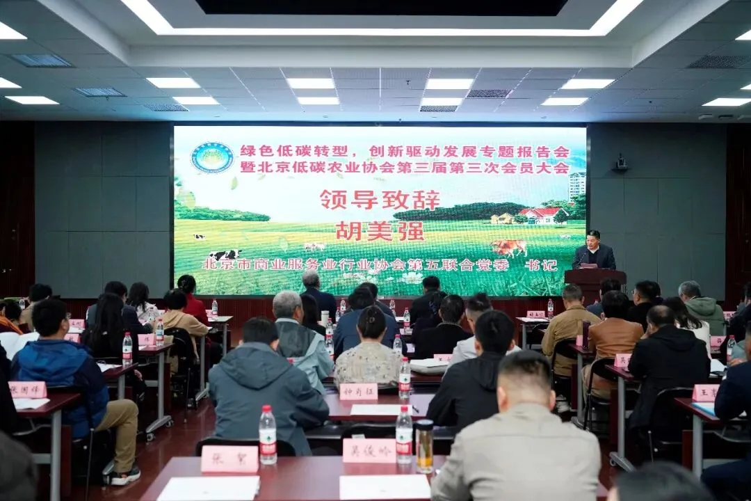 2026 年 4 月 11 日,绿色低碳转型创新驱动发展专题报告会暨北京低碳农业协会第三届会员大会第三次会议在中国农业科学院圆满举行。参加会议的有协会上级党委北京市商业服务业行业协会第五联合党委、科研机构、高等院校、推广单位、企业、合作单位、兄弟协会、协会理事会、监事会成员及会员单位代表、专家学者等共110余人,会议由刁其玉会长主持。