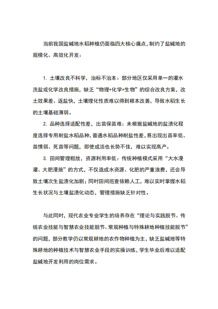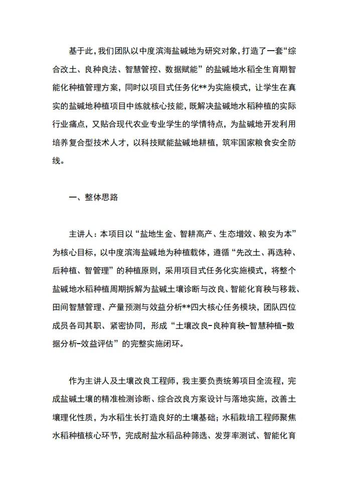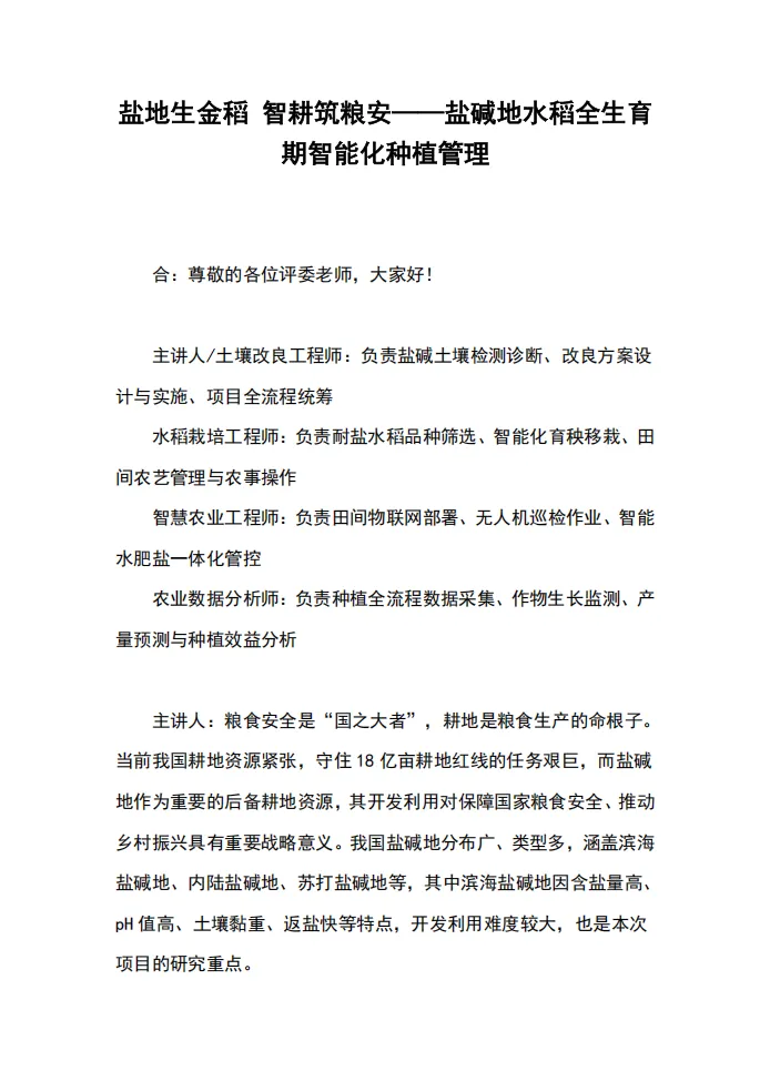 现代农业赛道——金奖项目模板:“稻香盐碱地”盐碱地水稻全生育期智能化种植管理