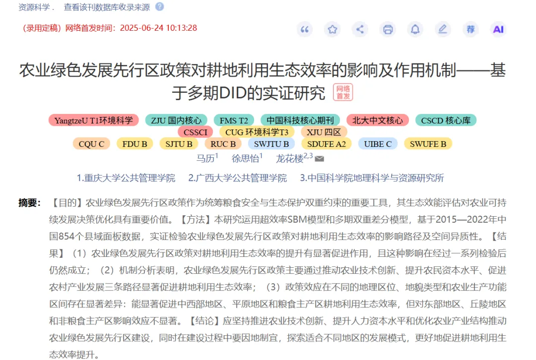 本文认为农业绿色发展先行区政策通过推动农业技术创新、提升农民资本水平、促进农村产业现代化三条途径来促进耕地利用生态效率。