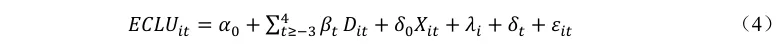 双重差分模型的使用前提是满足平行趋势,具体而言,在政策正式实施之前,试点地区与非试点地区在耕地利用生态效率方面的变化需呈现出平行趋势。具体公式如下: