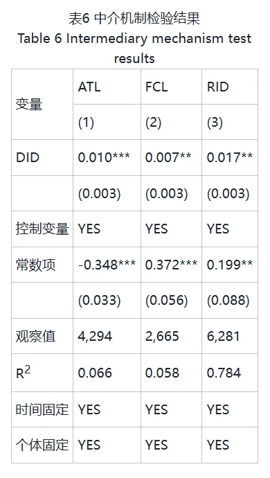 首先,对农业技术创新水平进行基准回归,结果如表6的列(1)所示,基准回归结果系数为0.010,并在1%水平下通过显著性检验,说明农业绿色发展先行区政策对农业技术创新水平存在促进效应。新的技术能通过替代效应减少生产对耕地的负面影响,通过使用创新农业技术能降低土地利用活动中对劳动力、能源等资源的依赖性,优化传统要素投入结构,降低农业碳排放。且其相比于传统农业技术对耕地资源进行更科学的规划和合理的布局,能提高当地投入要素利用率和农业生产效率,改善农业生产环境和提升农业发展质量,实现产能提升与生态保护的平衡,从而促进耕地利用生态效率。